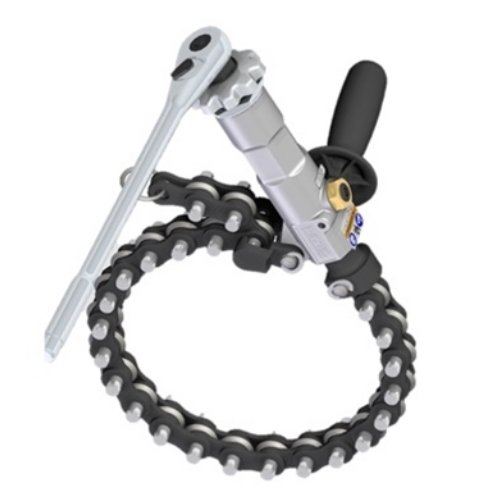 - Articulating outward facing chain hooks lay on the pipe to simplify latching